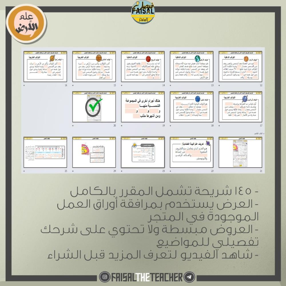 عرض بوربوينت مرافق لأوراق عمل لمقرر علم الأرض والفضاء 1-2 (الفصل الدراسي الثاني وليس الأول فارجو الانتباه) الموجودة في المتجر هنا