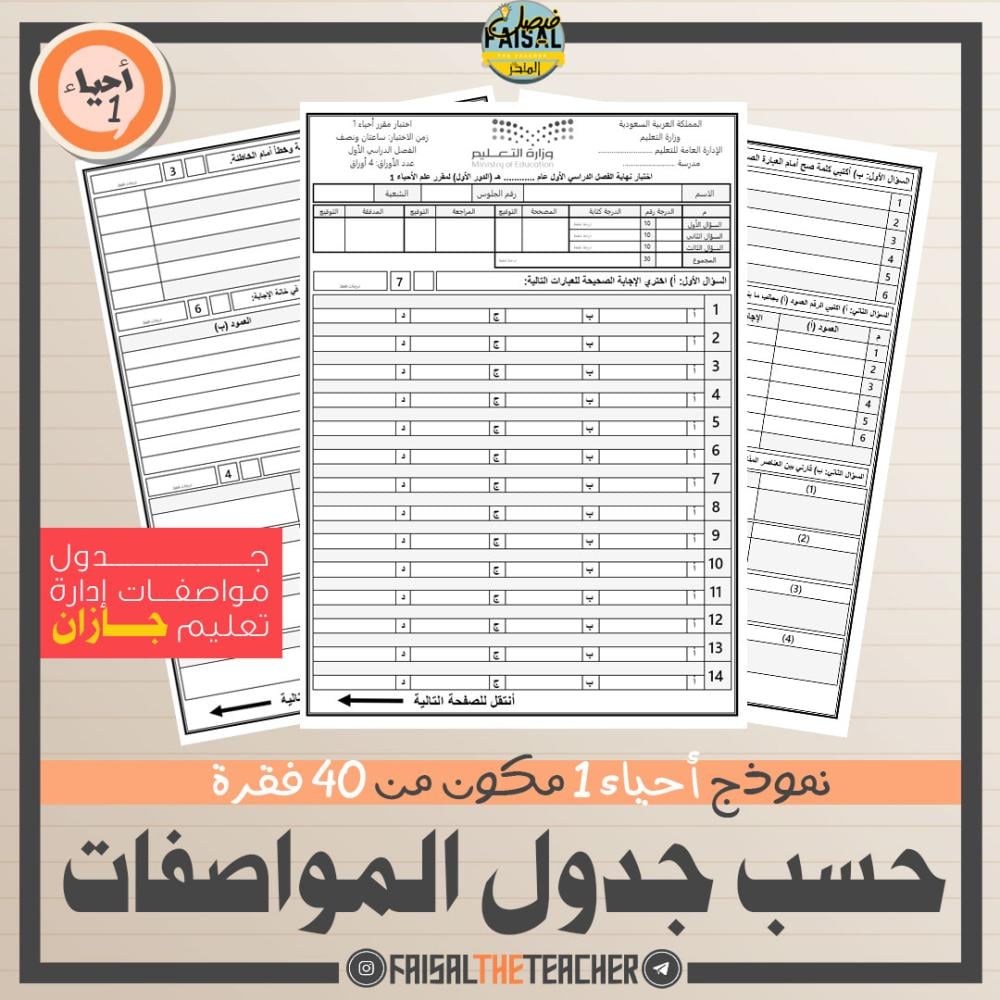 ⚠️ الاختبار مصمم على جدول المواصفات لإدارة التعليم بجازان