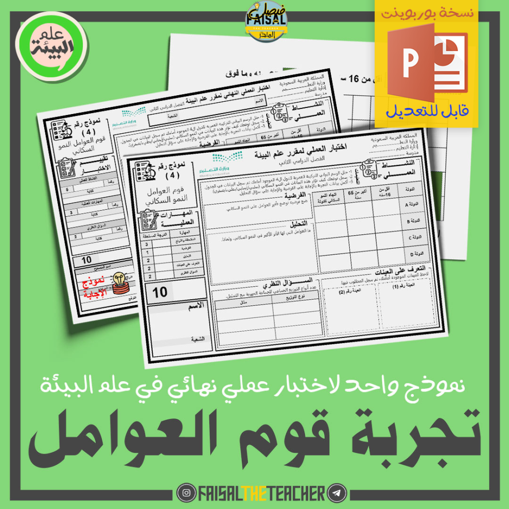 💡 نموذج للاختبار العملي النهائي لتجربة قوم العوامل للنمو السكاني في مقرر علم البيئة - نسخة بروبنتيت