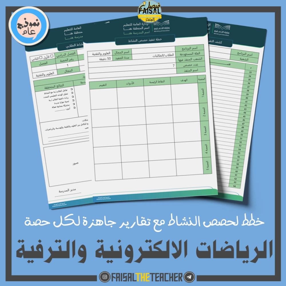 💡 خطة وتقارير حصص حصص النشاط لموضوع مهارات الرياضات الالكترونية والترفية في مجال الرياضة والصحة