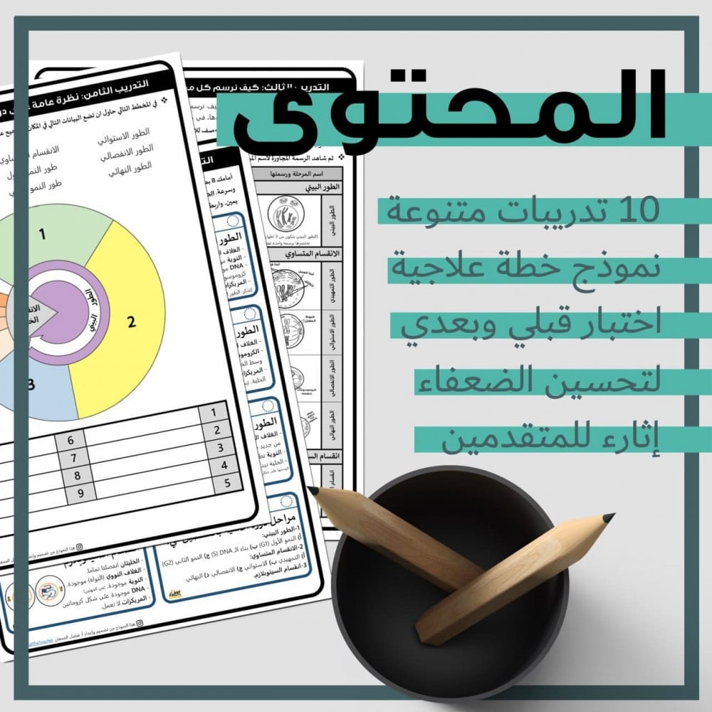 ملف تدريب متكامل مصمم للطلاب الضعفاء تحصيليا في موضوع دورة الخلية والانقسام المتساوي.