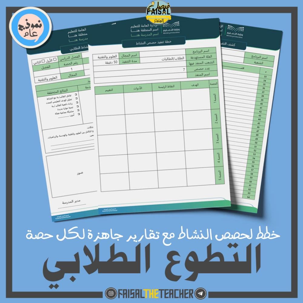 💡 خطة وتقارير حصص حصص النشاط لموضوع التطوع الطلابي في مجال المواطنة والحياة