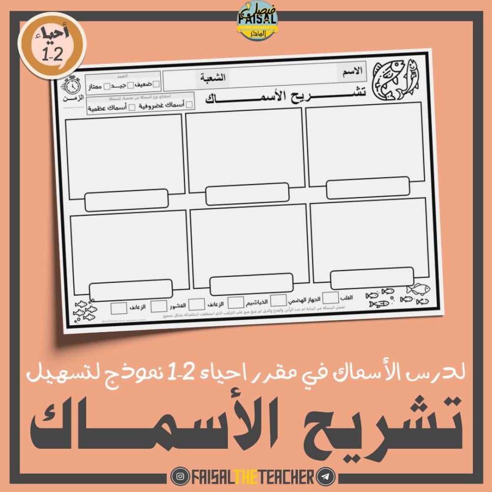 💡 نموذج لتسهيل نشاط تشريح الاسماك في الحصة في درس الاسماك في مقرر احياء 2-1