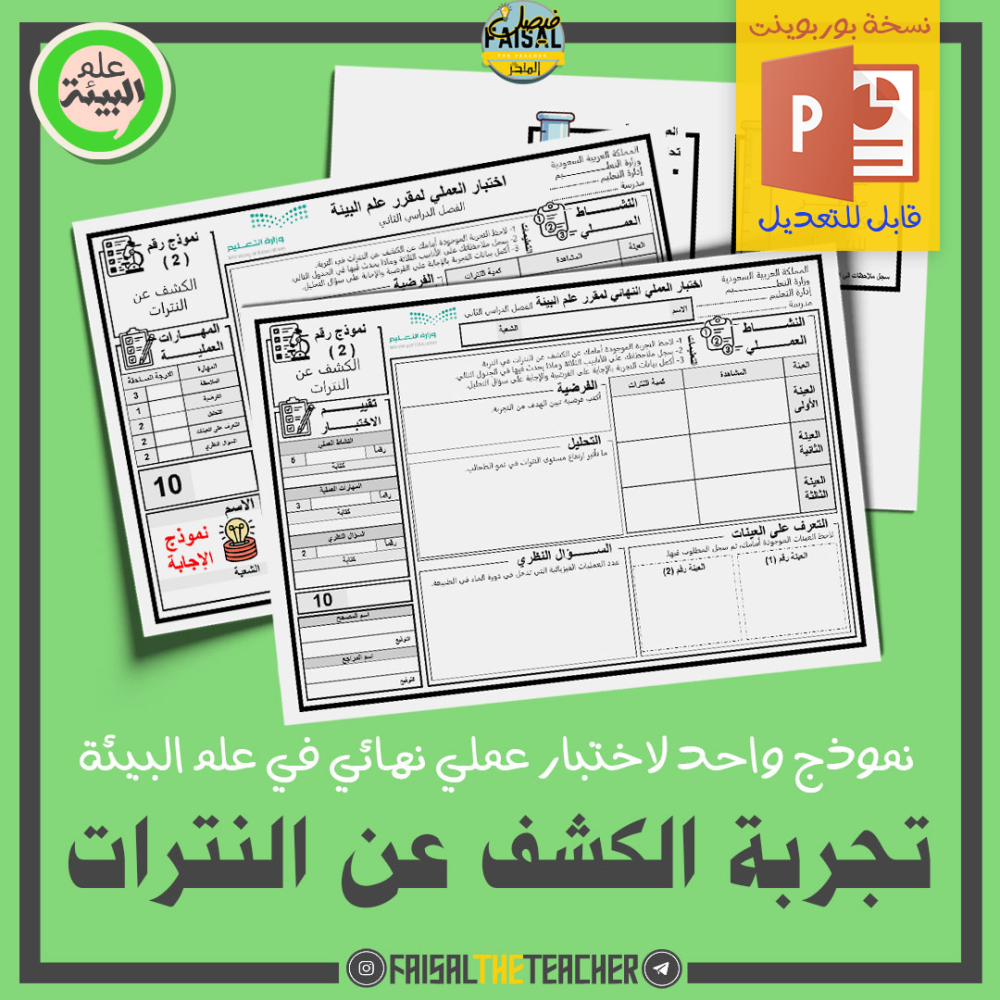 💡 نموذج للاختبار العملي النهائي لتجربة الكشف عن النترات في مقرر علم البيئة - نسخة بروبنتيت