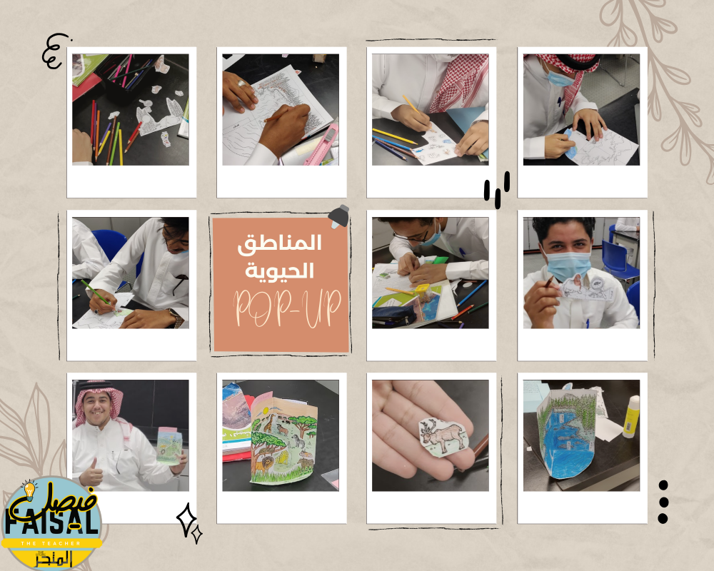 - يقوم الطالب بتلوين وقص وطي هذه الرسومات لينتهي به المطاف بإنتاج نموذج ثلاثي الابعاد (مجسم ورقي) يمثل المنطقة الحيوية المراد دراستها.