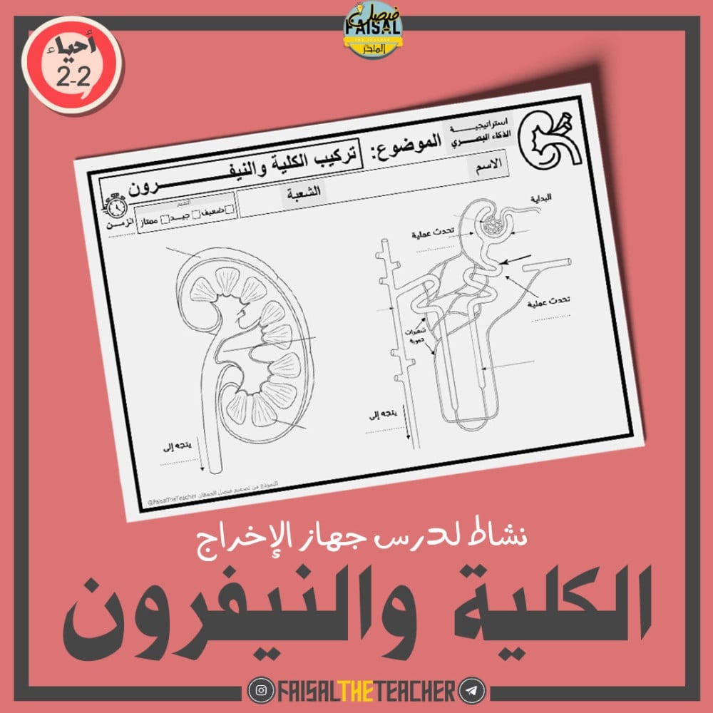 💡 نشاط بيانات رسم الكلية والنيغرون لدرس جهاز الإخراج في مقرر احياء 2-2