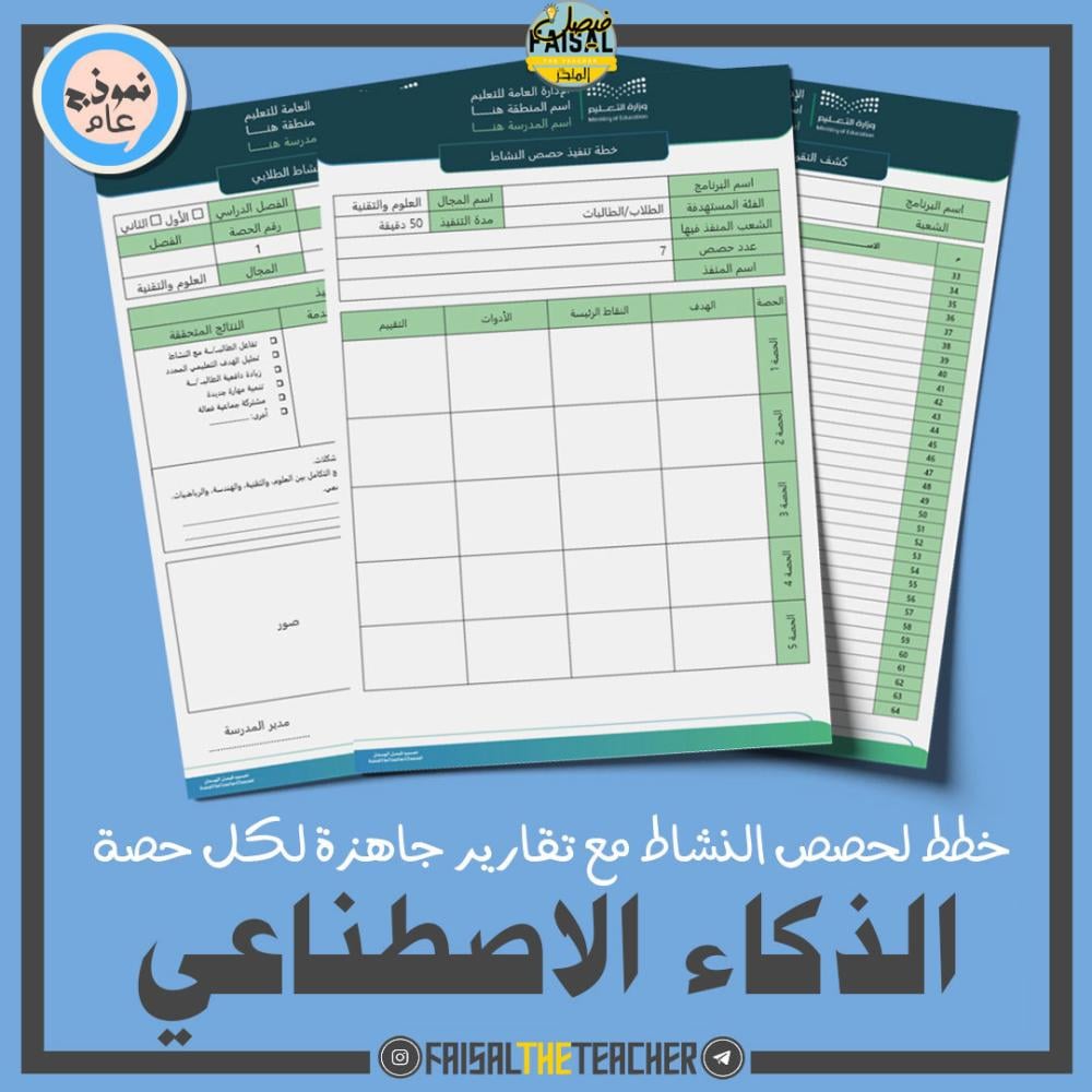 💡 خطة وتقارير حصص حصص النشاط لموضوع الذكاء الاصطناعي في مجال العلوم والتقنية