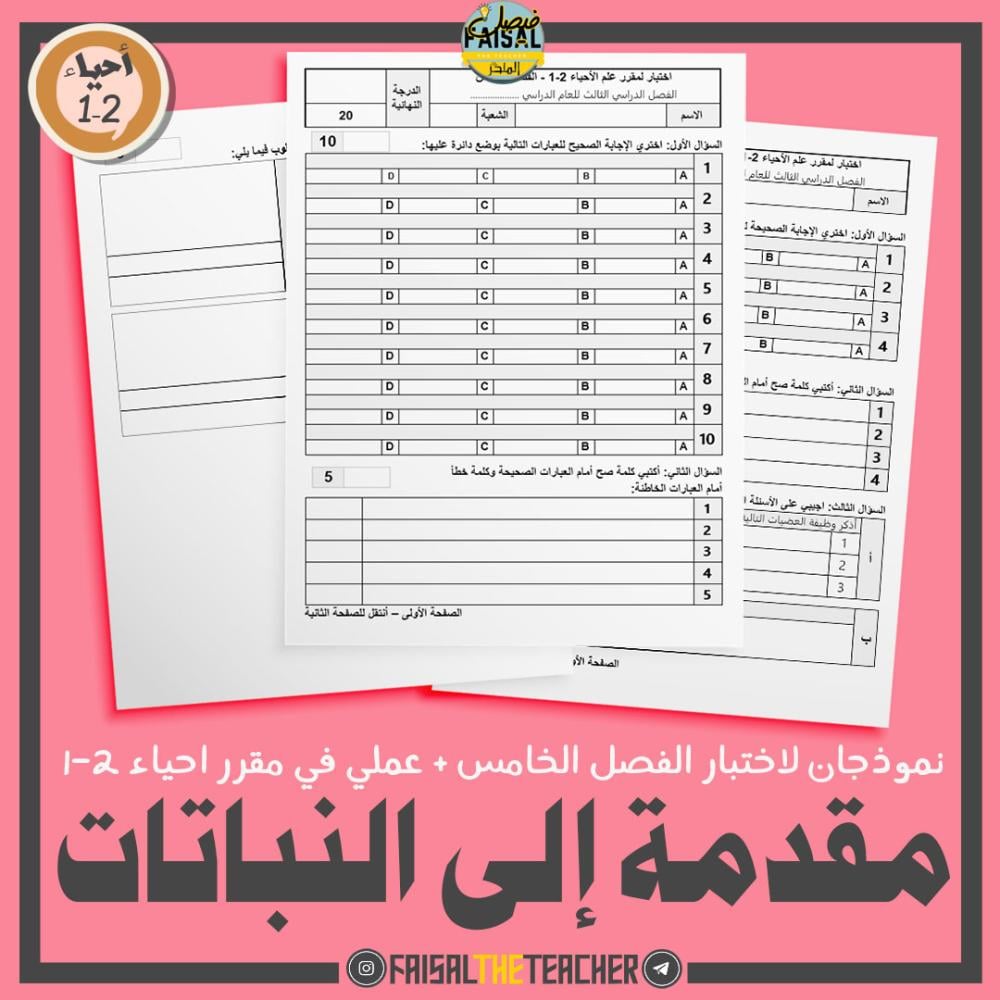 📄 ارجو مراجعة الاسئلة ونموذج الاجابة قبل تنفيذ الاختبار للتاكد من صحة كل شيء. المتجر غير مسؤول عن عدم مراجعتك للأسئلة ومناسبتها لطلابك.