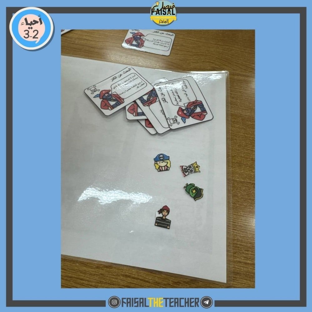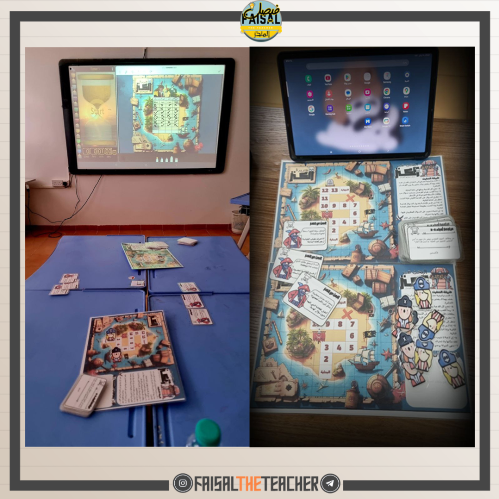 💡لاعبين يلعبون ضد بعضهم في الاجابة على اسئلة في بطاقات موجوده على لوحة لعب على شكل خريطة كنز وطالب ثالث يكون الحكم يقرأ الاسئلة. بهدف الوصول الى الكنز.