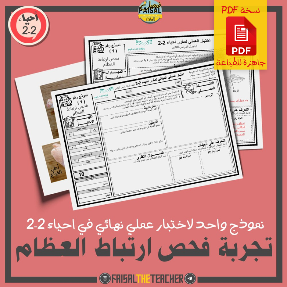 💡 نموذج للاختبار العملي النهائي لتجربة فحص ارتباط العظام في مقرر (أحياء 2-2) - نسخة PDF