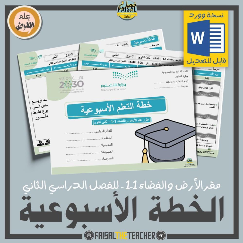 💡 خطة التعلم الأسبوعية لكامل مقرر علم الأرض والفضاء 1-1