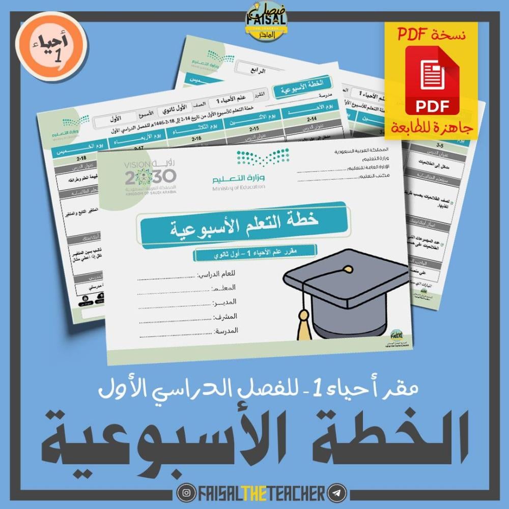 💡 خطة التعلم الأسبوعية لكامل مقرر أحياء 1