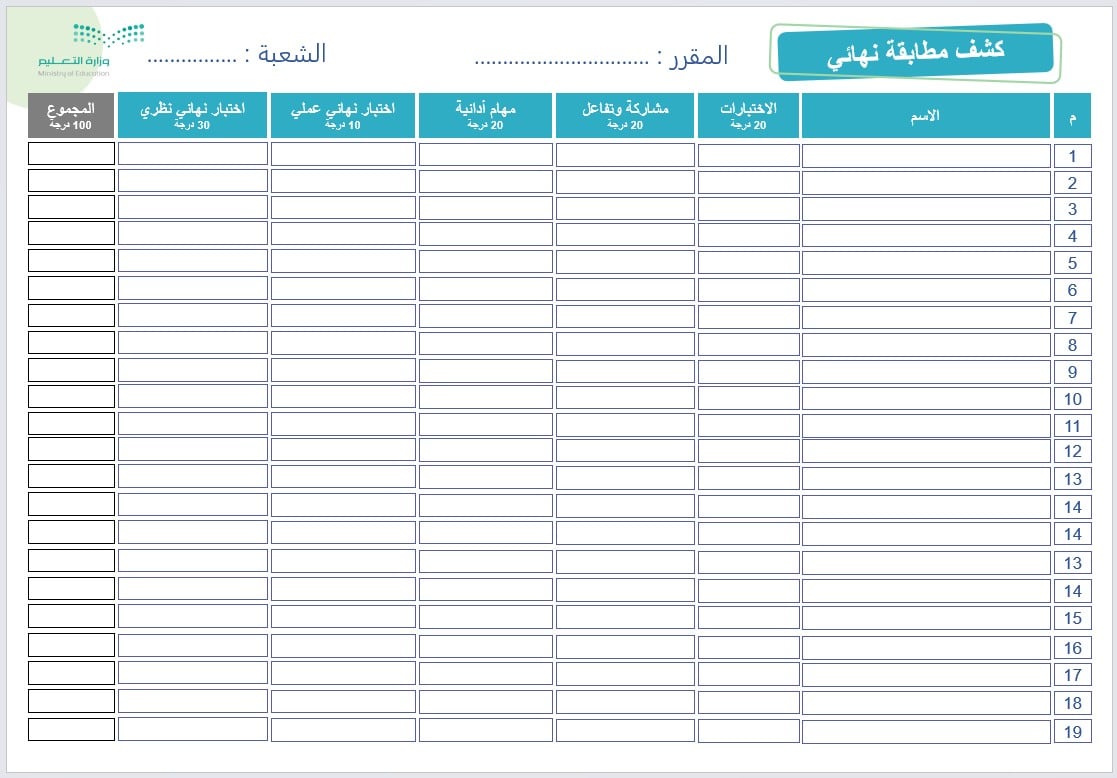 💡 نموذج كشف للرصد النهائي للدرجات لرصدها في نور بنظام الفترتين او الفترة