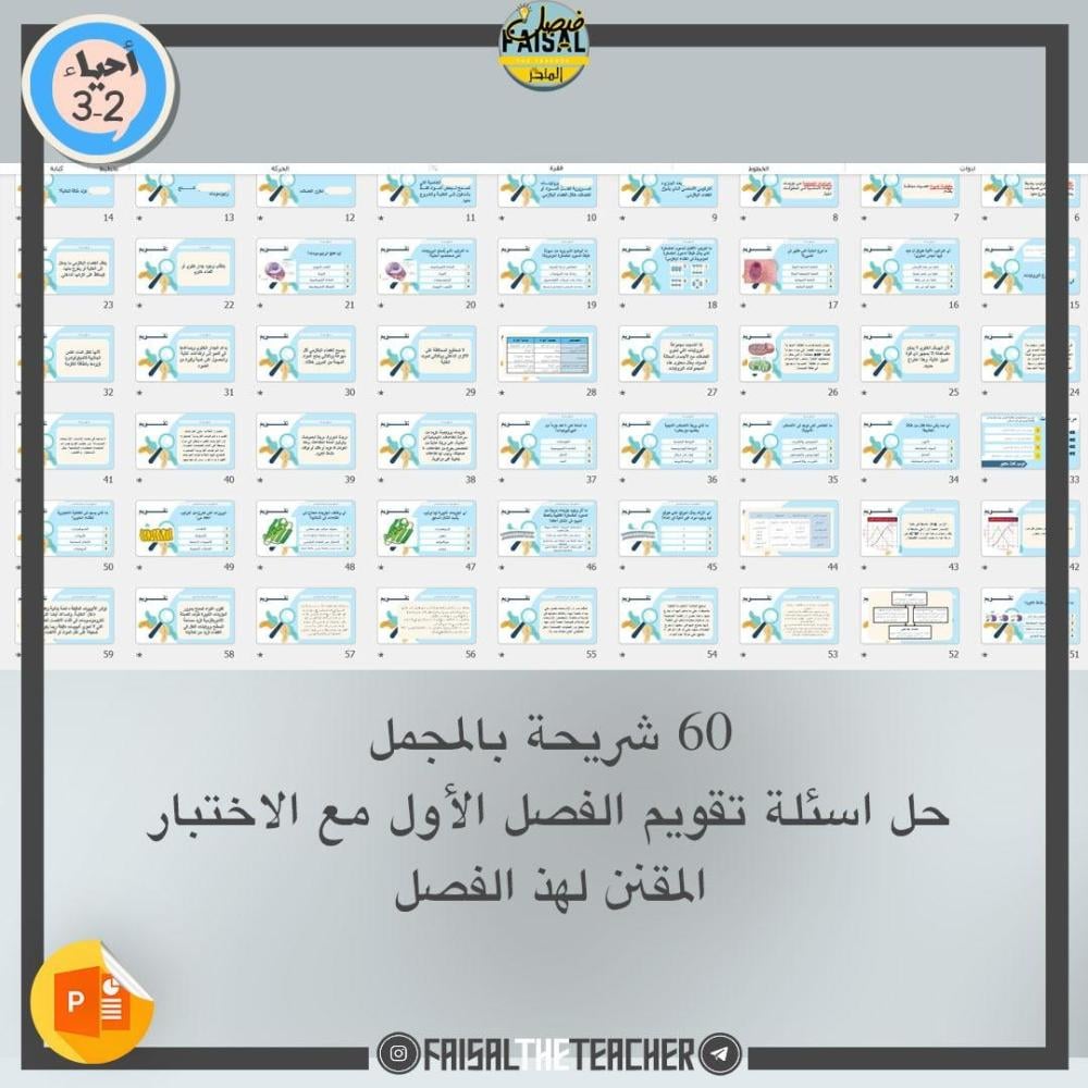 عرض بروبوينت لحلول تقويم نهاية الفصل الثامن والاختبارالمقنن في مقرر أحياء 2-1
