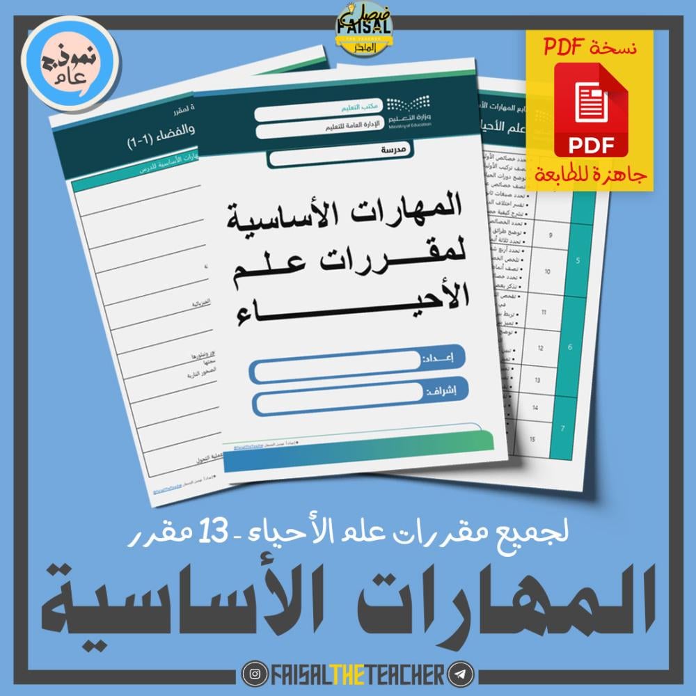 💡 نموذج سجل المهارات الأساسية (الأهداف) لجميع مقررات الأحياء - 12 مقرر