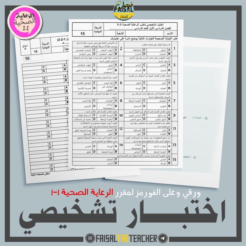💡 نموذج واحد لاختبار تشخيصي لبداية الفصل لمقرر الرعاية الصحية 1-1 - الفصل الدراسي الأول
