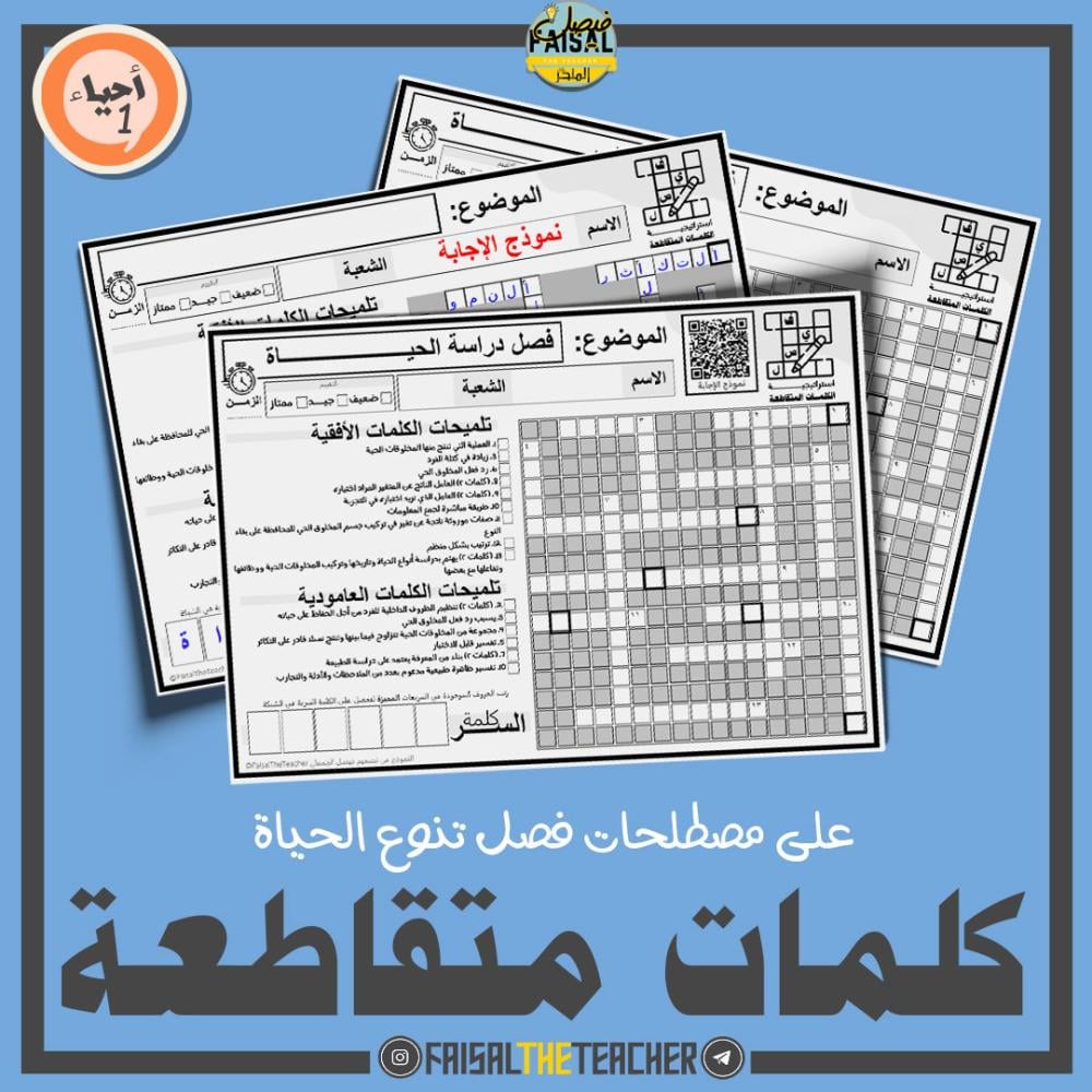 💡 نشاط الكلمات المتقاطعة لمصطلحات فصل (باب) تنوع الحياة في مقرر احياء 1