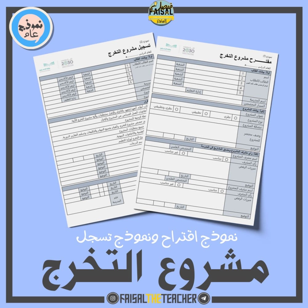 💡 نماذج اقتراح وتسجيل مشروع التخرج للمعلم والمدرسة